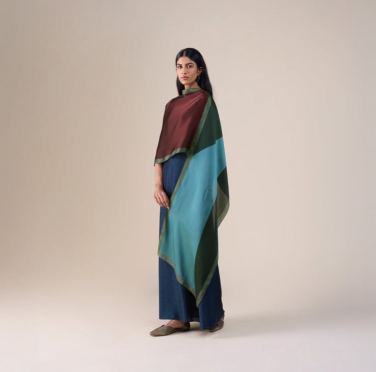 Wrap yourself in the softness of silk with our Irene scarf, which combines shades of wine-red burgundy, deep forest green and steel blue into a wardrobe staple. Wear her anywhere from a casual stroll on the beach to a formal dinner party.