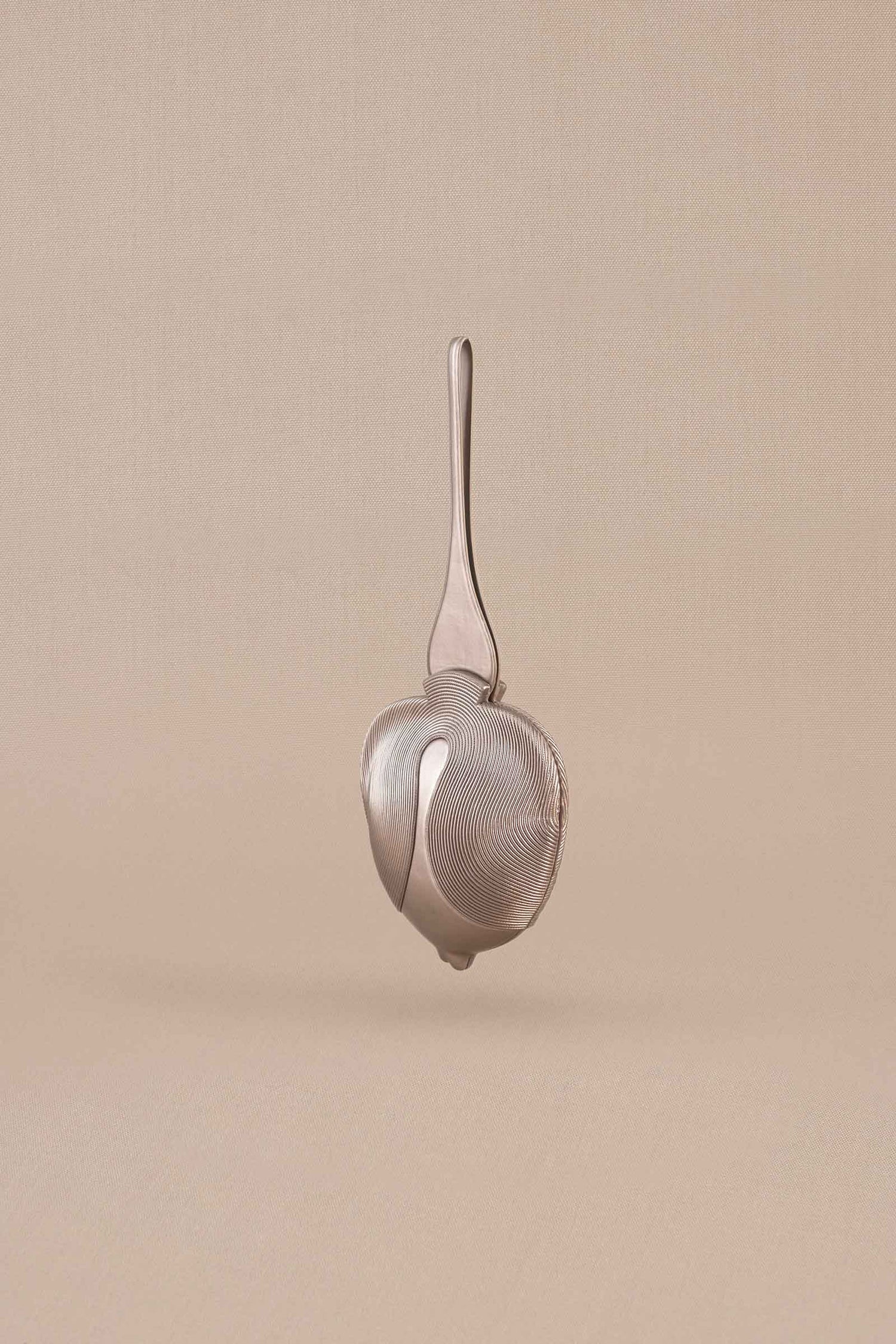 Compact, metallic and fluidly corded, the Kudrat top handle bag floats with sensuality.