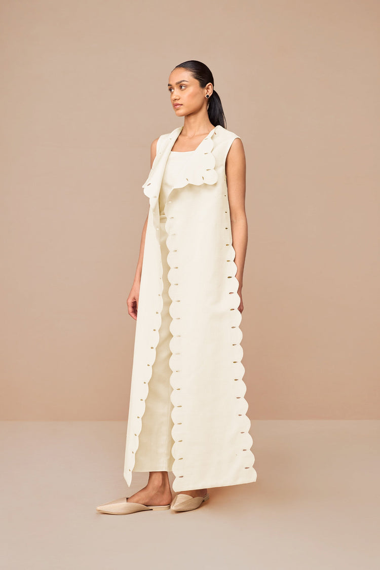 Accompanied by an inner and dhoti inspired pants in the same fresh ivory - like freshly fallen snow - the entire set is cinched together by a faux leather belt. Pair Cleo with our Lesha slip-ons in tan for a day spent out in the sun.