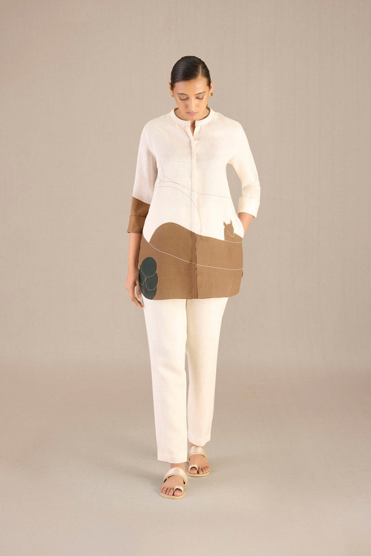 A serene landscape unfurls along the hem of our Shireen shirt. Made of the softest linen, the relaxed silhouette of this set is what summer dreams are made of.